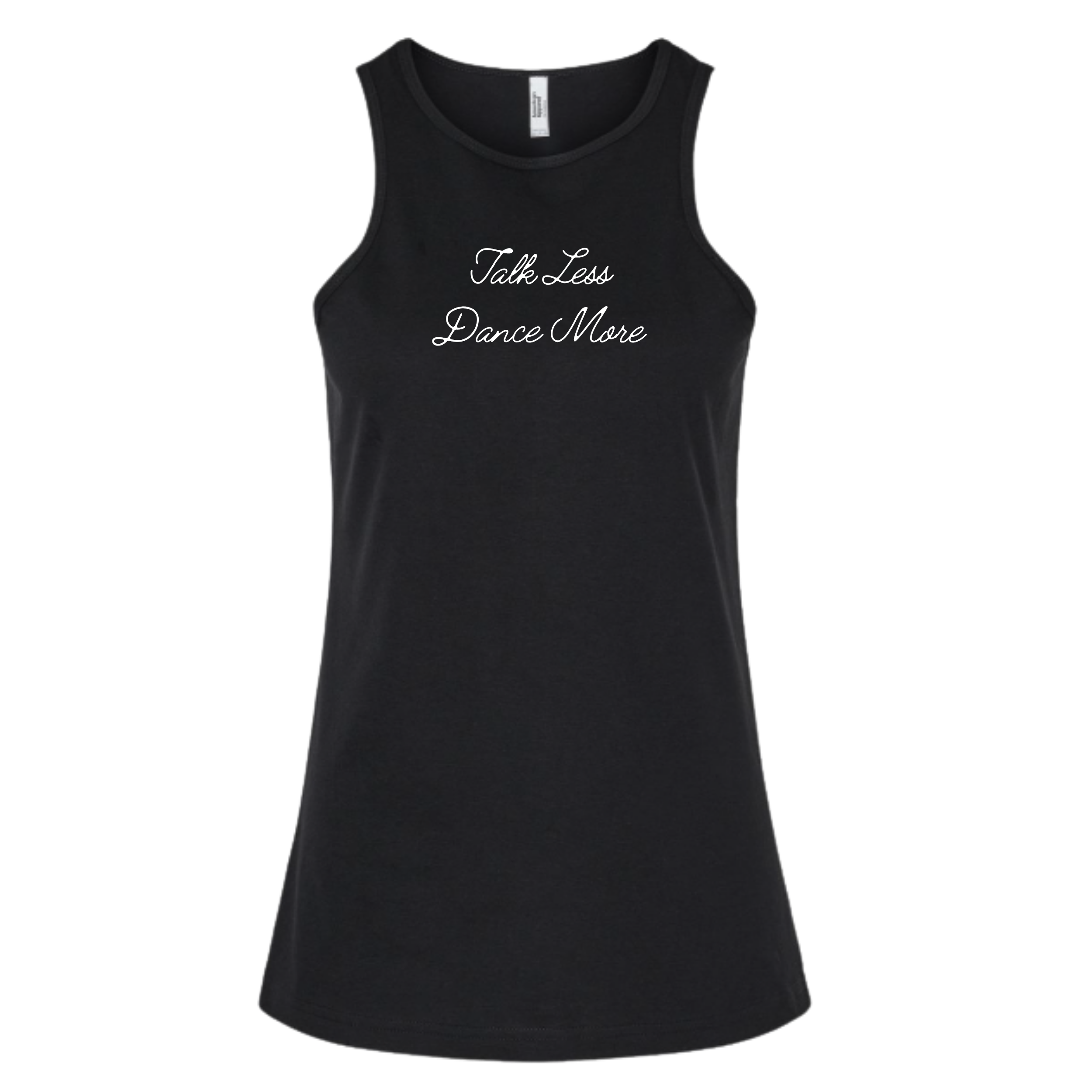 Less chatter, more rhythm. This bold and breezy racerback tank is made for the girl who lets her movement speak louder than words. Featuring our signature Talk Less Dance More script on the front, this is your new studio-to-street essential.